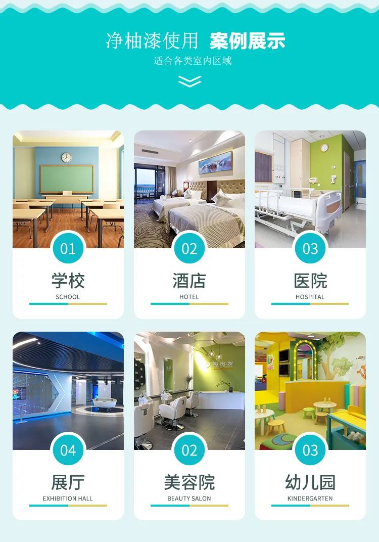 凈柚水性瓷化墻膜是一種新型的墻面裝飾材料。產(chǎn)品解決了傳統(tǒng)涂料耐污性能弱、硬度不足、遇水易粉化、發(fā)霉、防火等級無法滿足室內(nèi)公共區(qū)域要求等缺點,具有仿瓷質(zhì)感、耐污(可自潔)、抗菌、防霉、防水、耐化學溶劑擦拭等優(yōu)點。