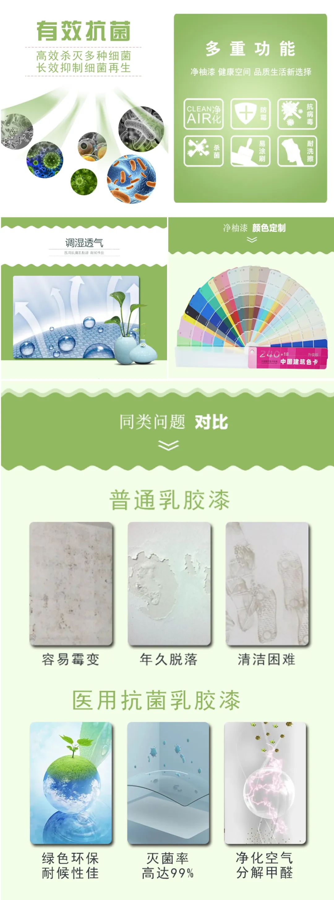 凈柚抗菌乳膠漆,一種合成樹脂乳液漆,是綠色環(huán)保的功能水性涂料,具有殺菌、抗菌、分解